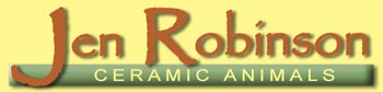 I have been a professional potter since 1979. A long time ago I started specialising in hand modelled animals. If I throw a pot on the potters' wheel, which is quite rare, I either transform it into an animal, or add one to it. I make lots of different types of animals, in all sorts of shapes and sizes, My animals tend to be either humoristic or full of tenderness, or both. I work with several different earthenware and stoneware clays, (white, red, black and brown, smooth or grogged) fired between 1000°C and 1280°C, and decorated with a large range of colours. Sometimes I associate the clay with other materials, for instance the brass and copper wire I use for my cows and silly birds but not much now as these materials are getting too expensive. |